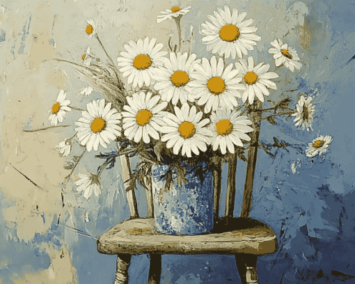 Benefits of Daisies on Vintage Chair Diamond Painting Artwork